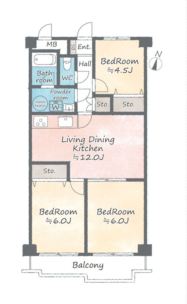 ペットと暮らす。明るい南向き3LDKコンパクトなファミリー住戸♪